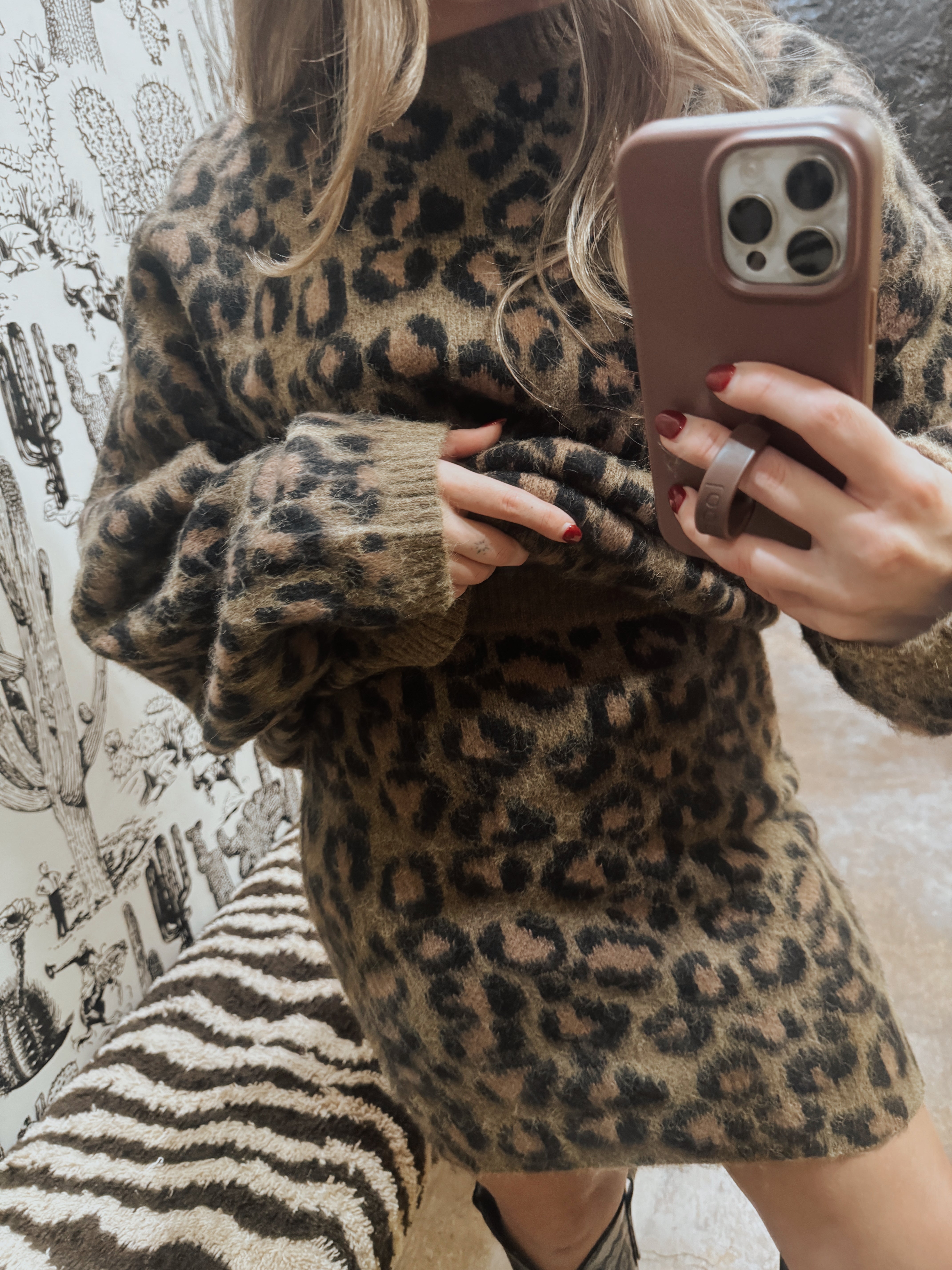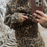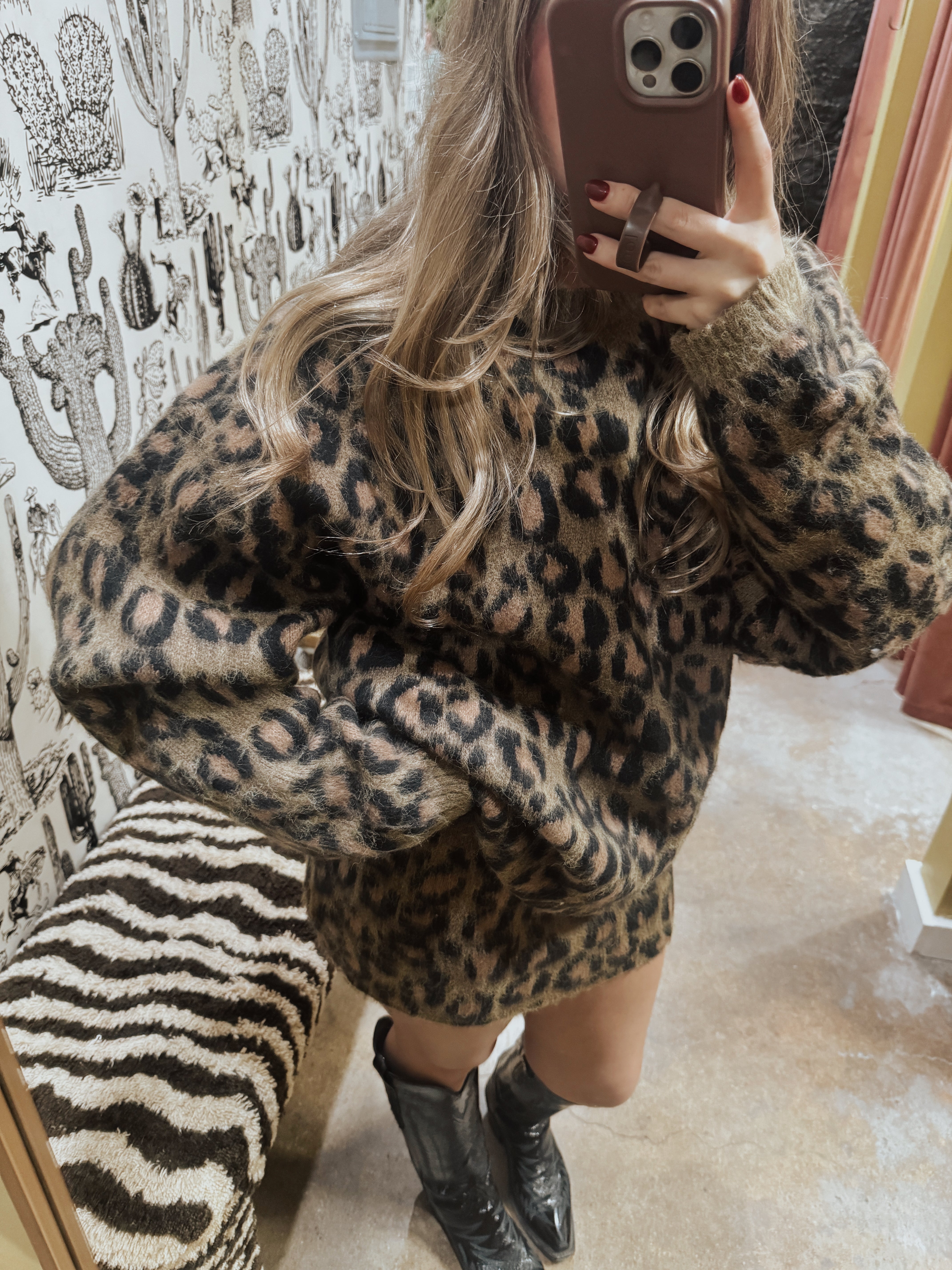 ANIMAL PRINTED OVERSIZED SWEATER TOP AND SKIRT. model is 5’2 wearing a size S/M. Skirt is tall girl approved! You can pull up the skirt to make shorter.