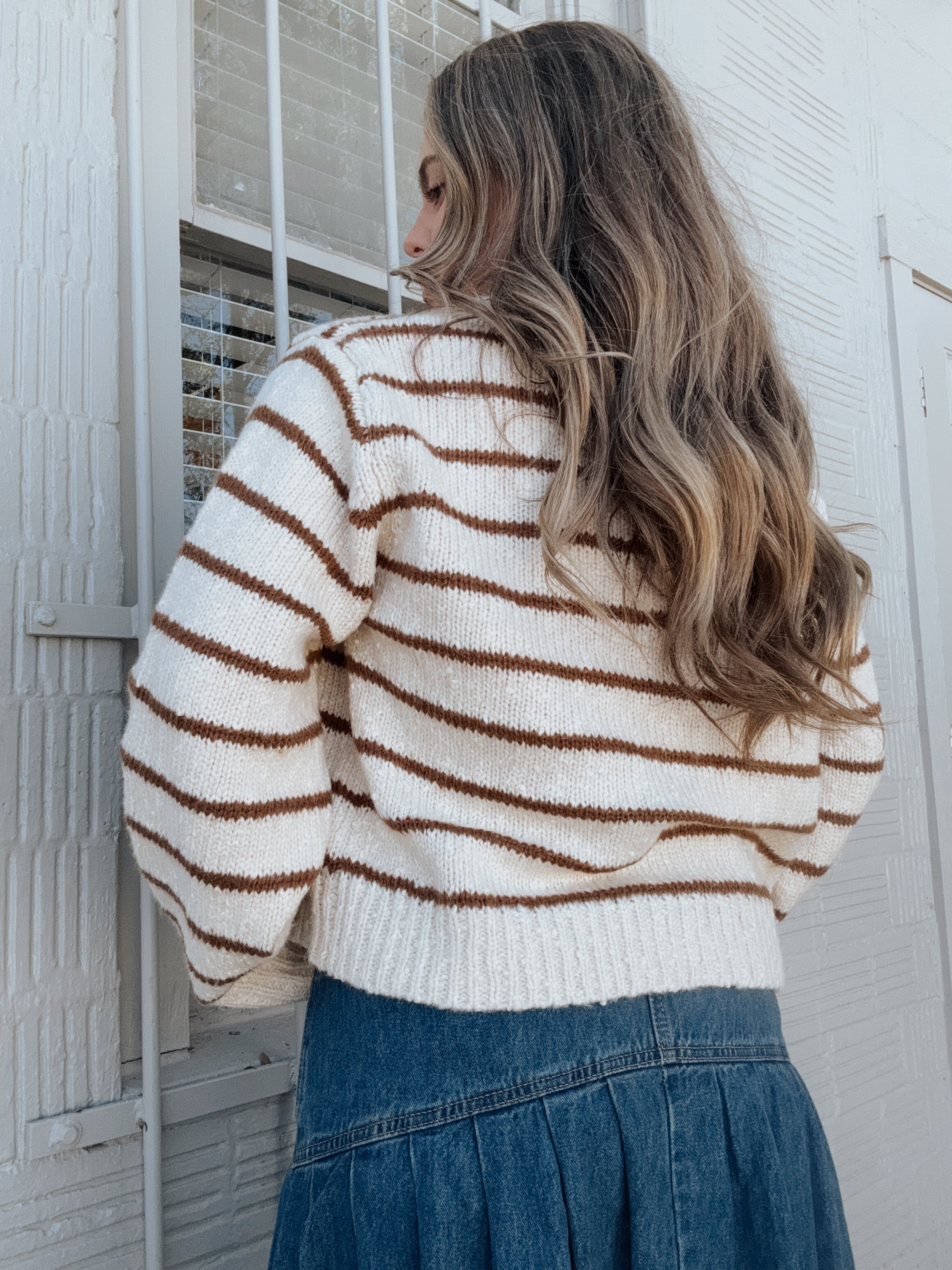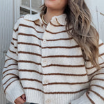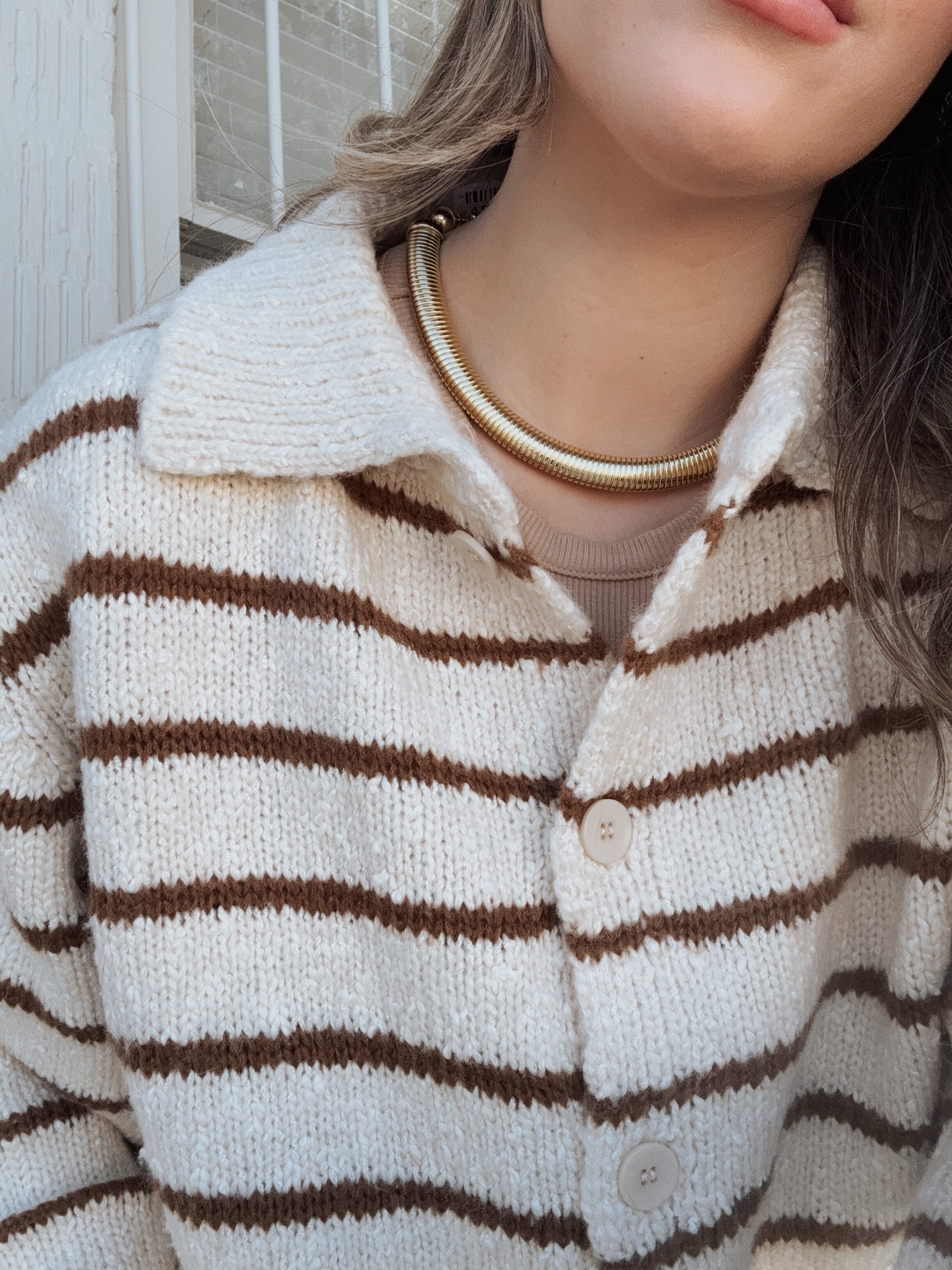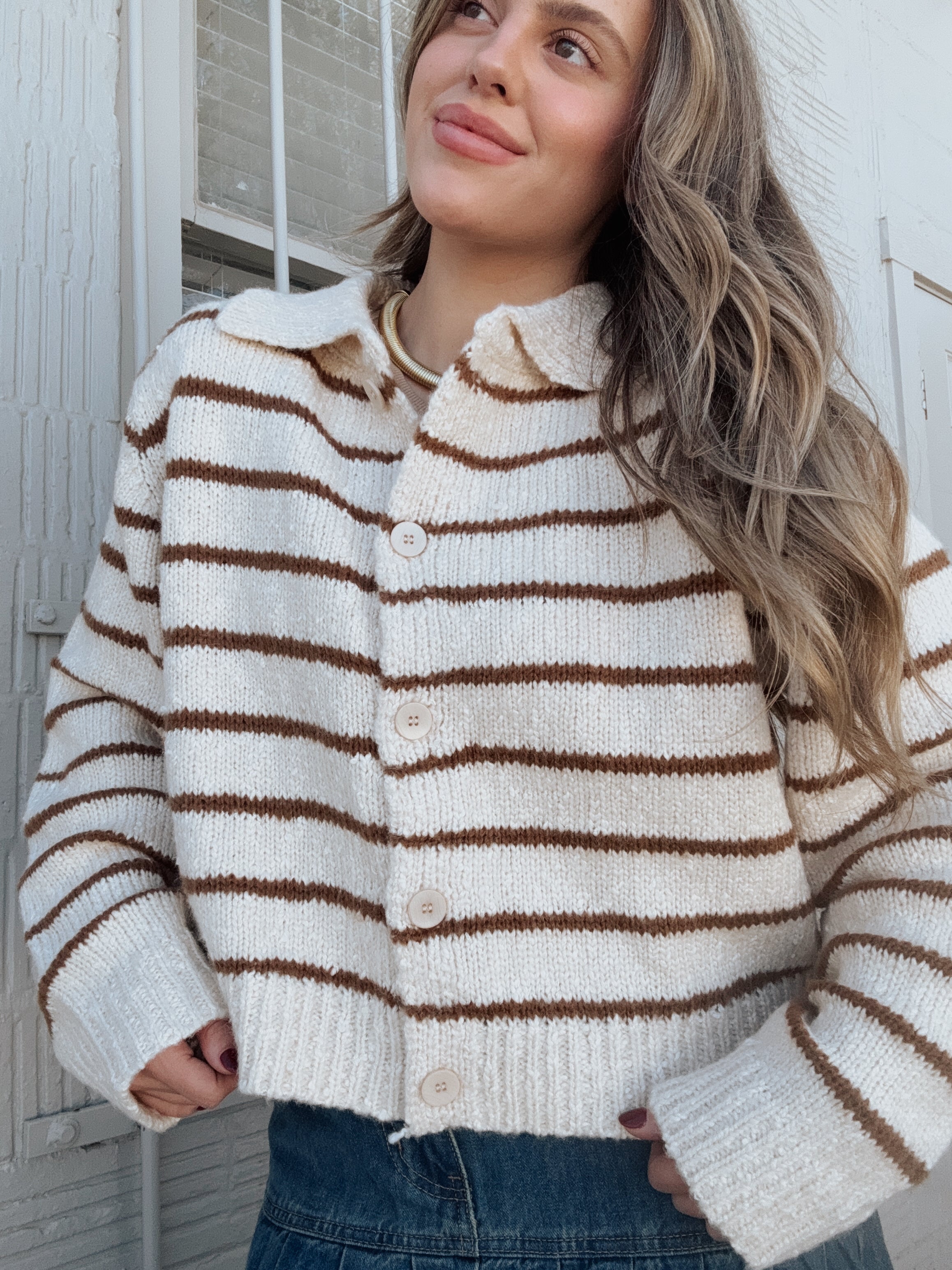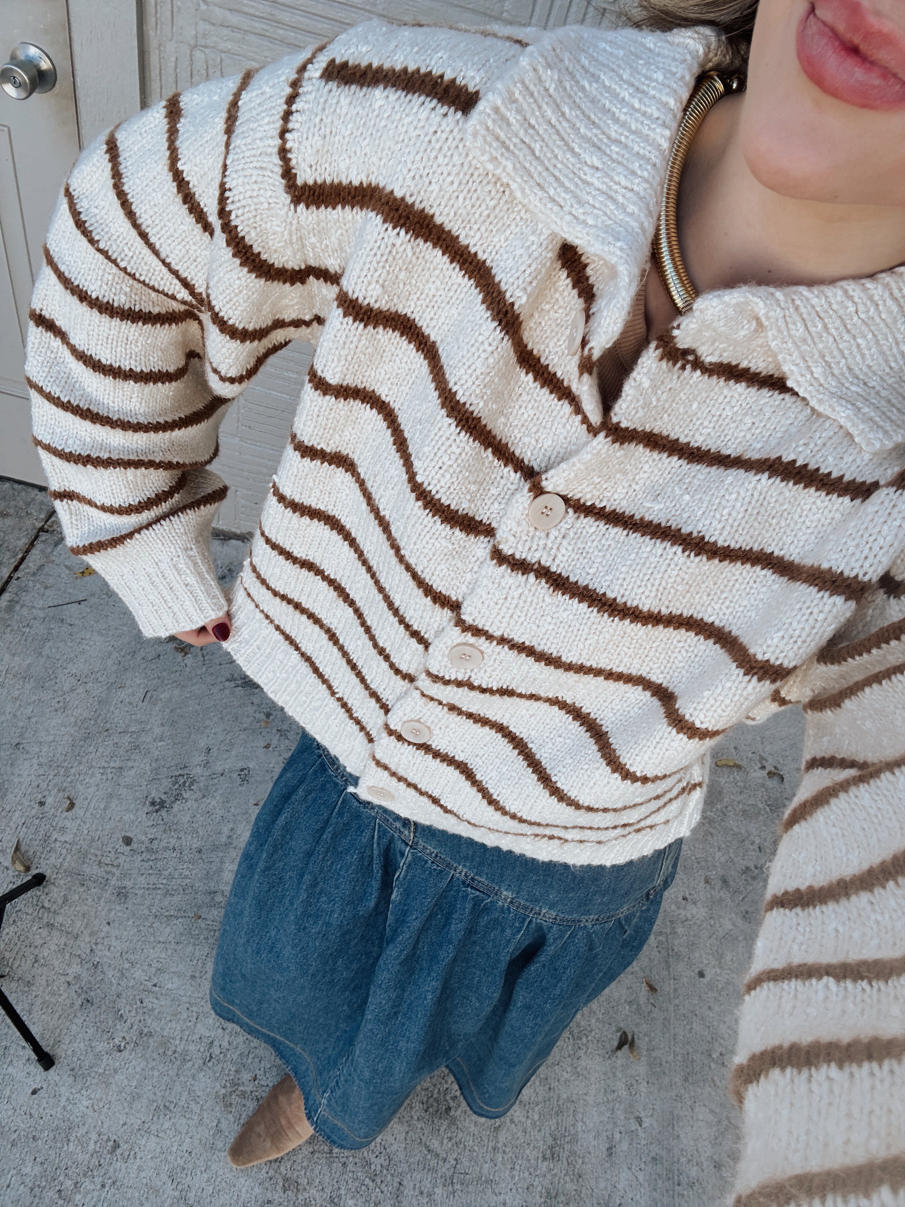 BUTTONDOWN STRIPED KNITTED CARDIGAN - Model is wearing size M for a little oversized fit. TRUE TO SIZE