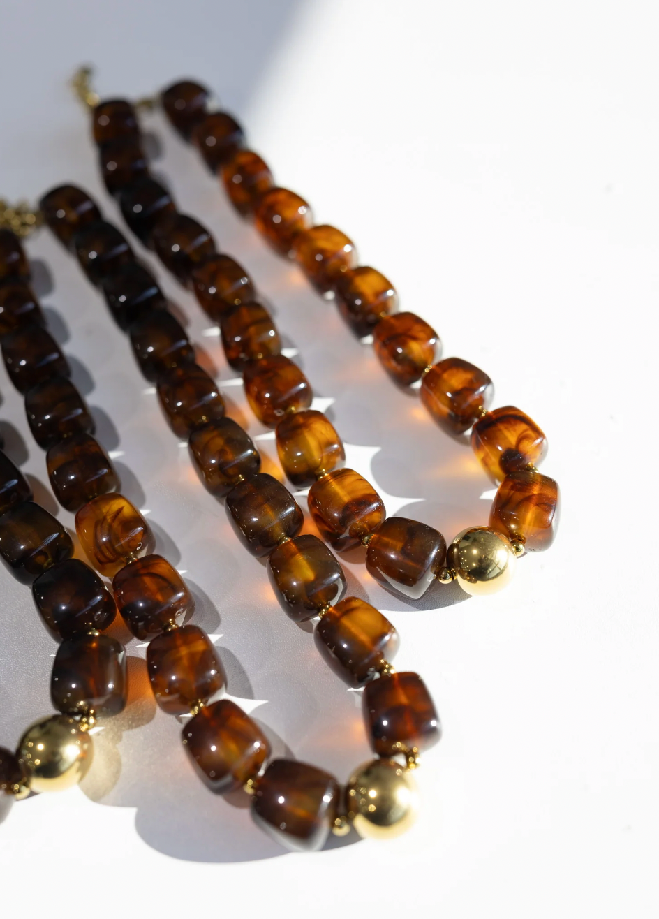 Like a party for your neckline—this necklace is full of personality with its large beads, fun shapes, and gold details. We love the gold center statement bead!
