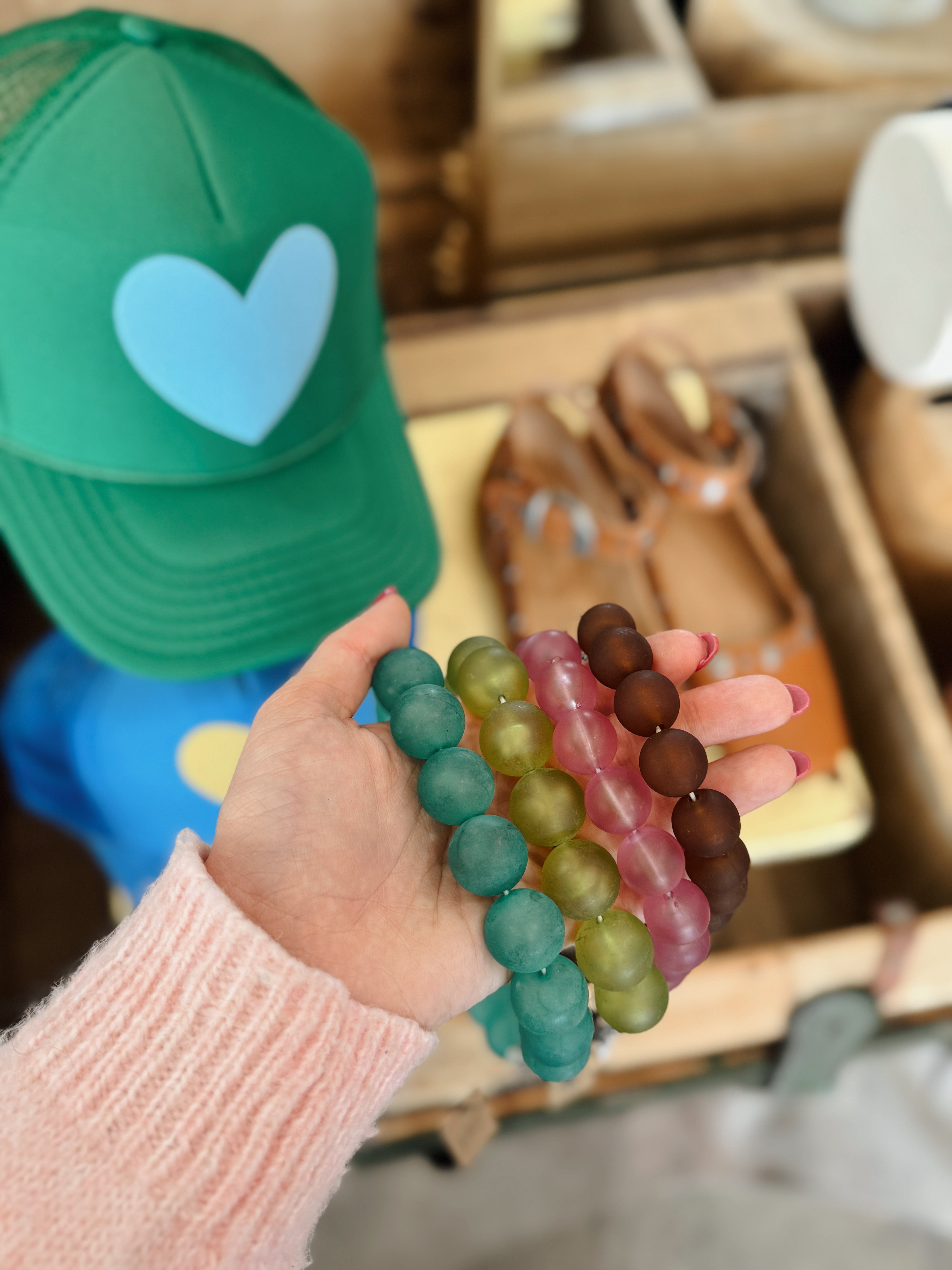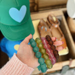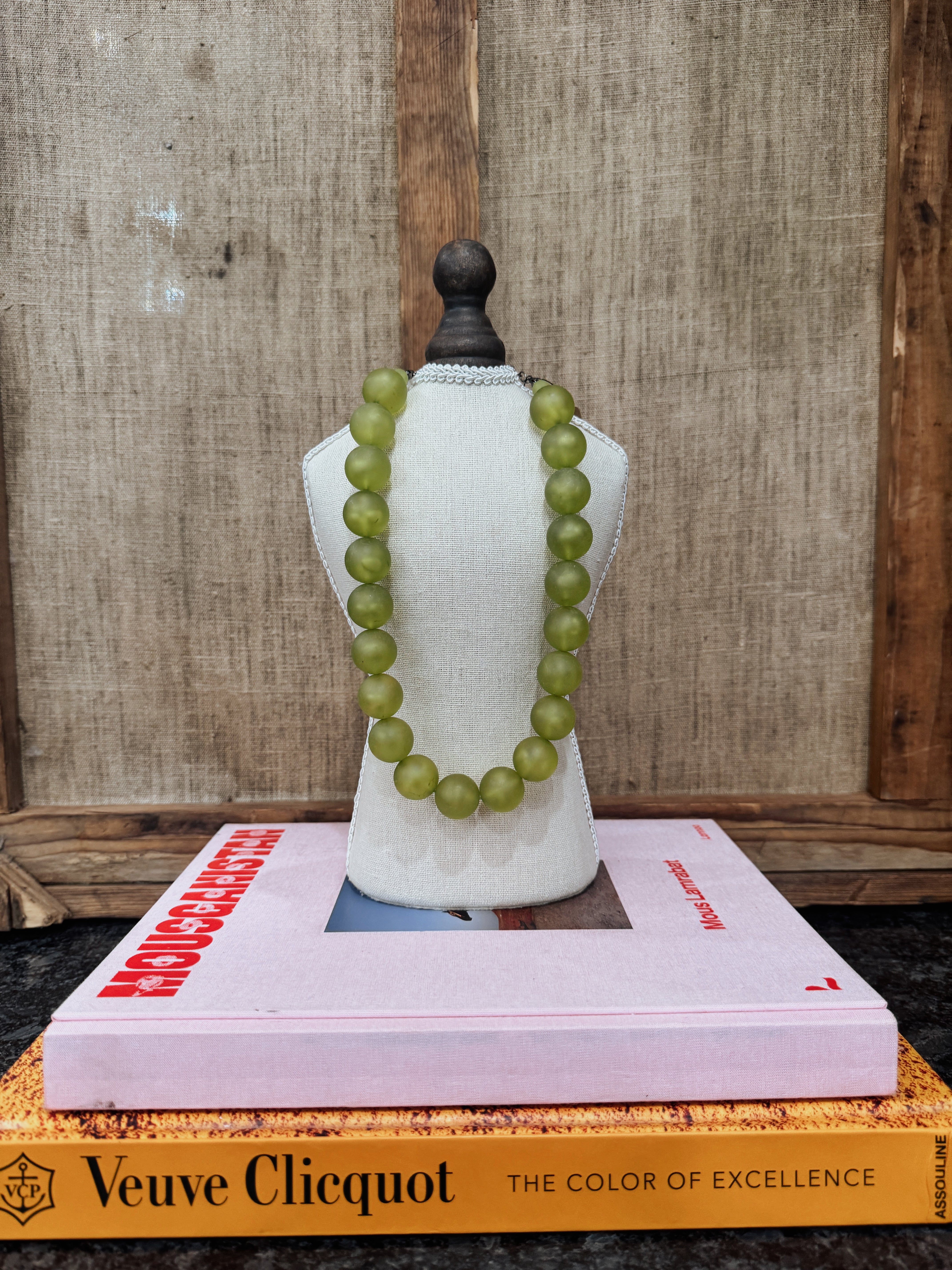 Fun statement bubble necklaces featuring lucite beads in a frosted finish. The beads are lucite - a light-weight acrylic, each measuring about 16mm. Each necklace measures about 16" + a 4" gun metal extender. Jewelry is designed & hand finished by us, here in the US. Most all are made with vintage lucite parts from the 1960's - early 80's. Light-weight & fun to wear.