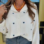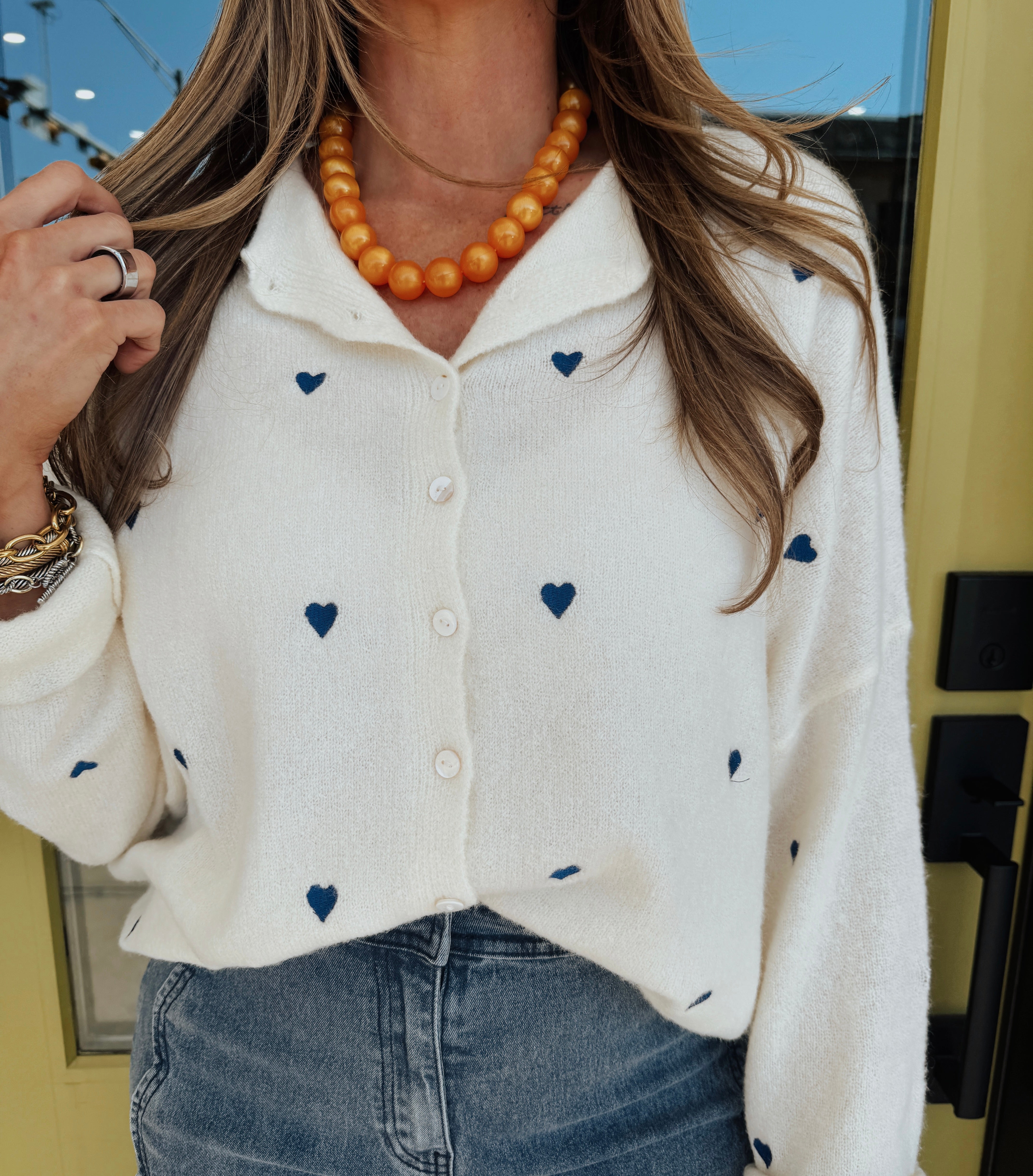 Soft and cozy lightweight cardigan with rolled edge finish on the sleeves and collar.