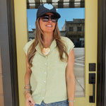 Soft sweater vest cardigan with rolled edge details. model is wearing size small in all colors