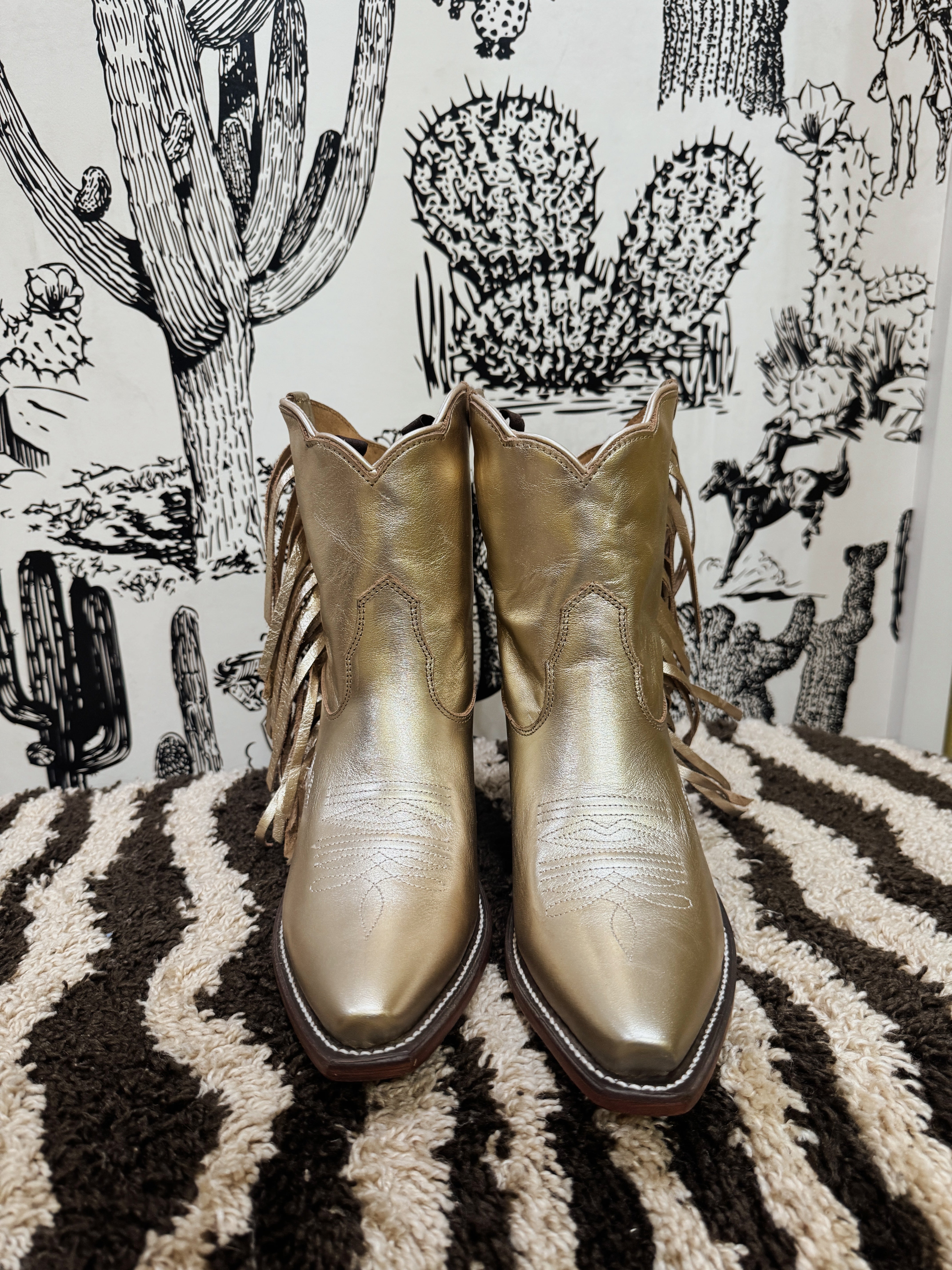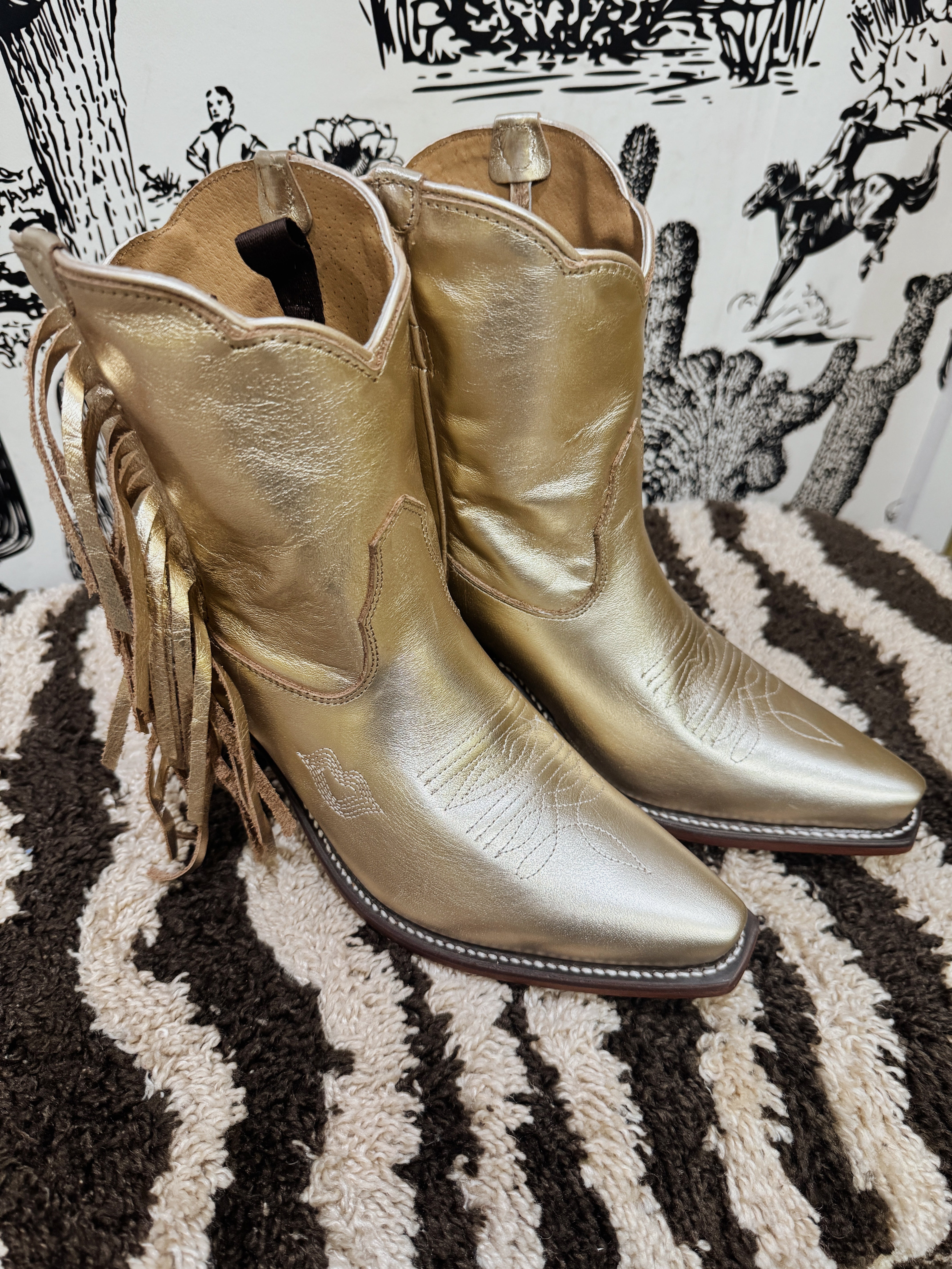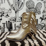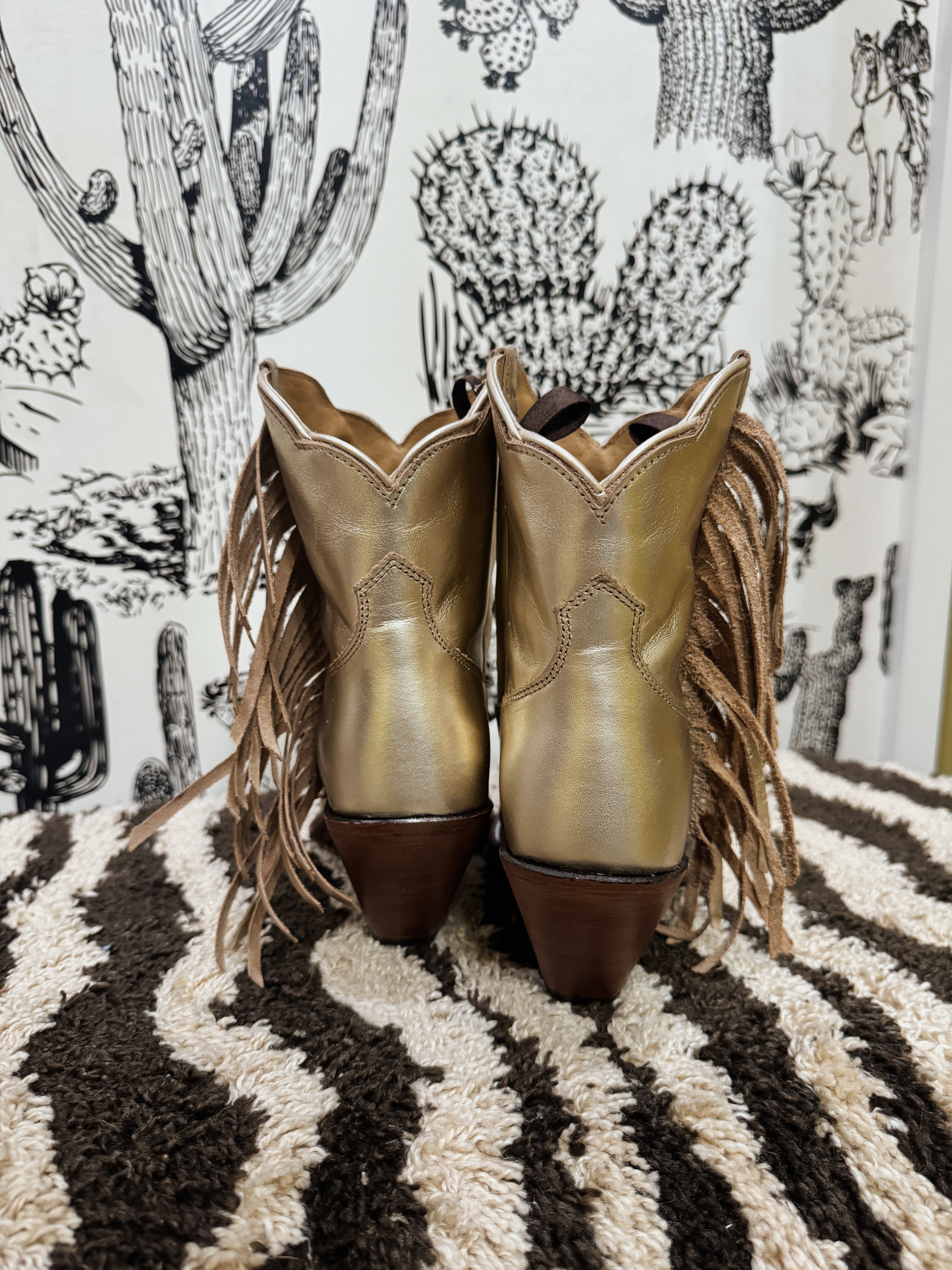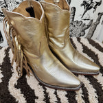 Gold metallic fringe boots. Besita boots, sister brand to Miron Crosby. Handmade genuine leather!