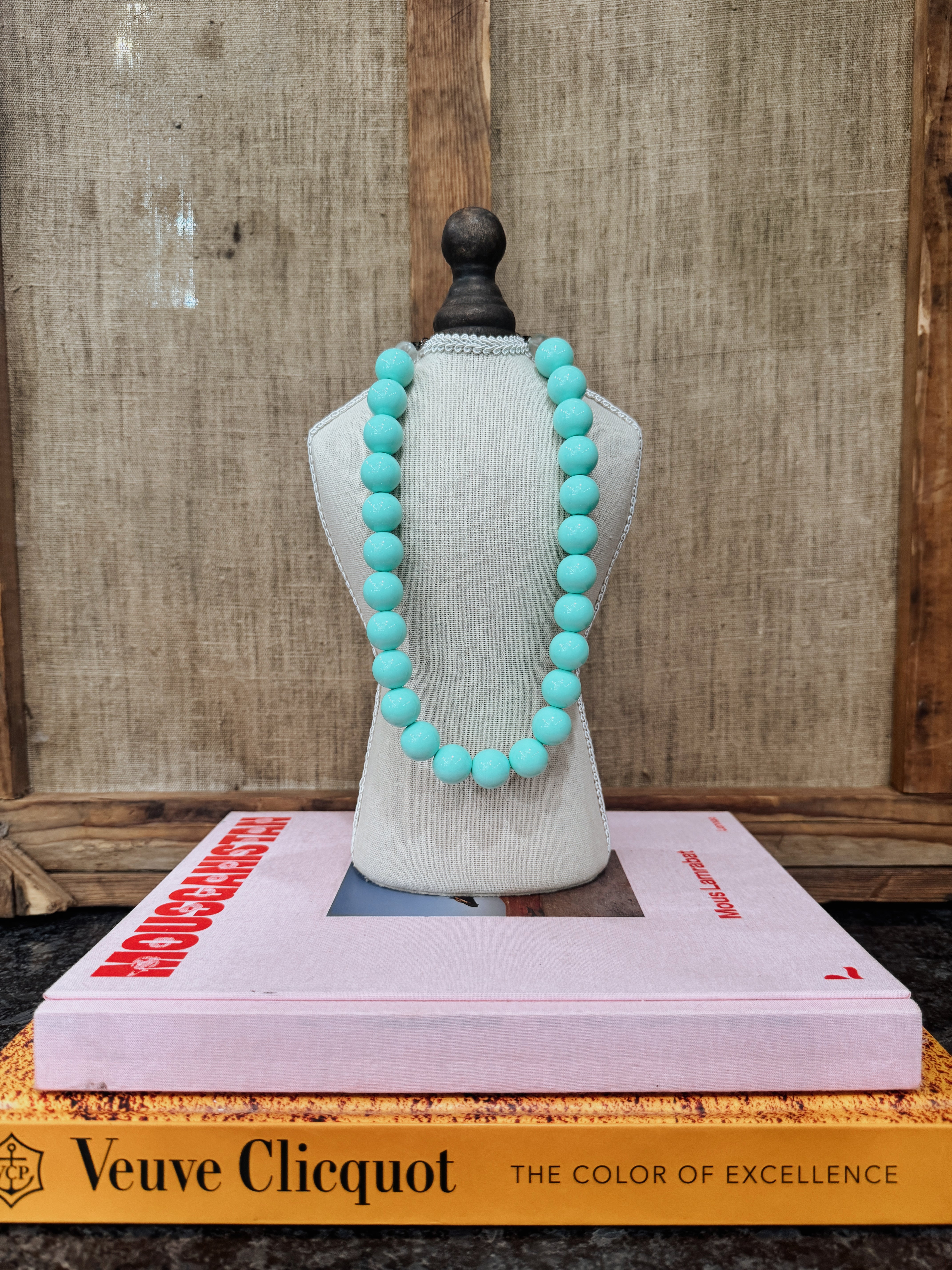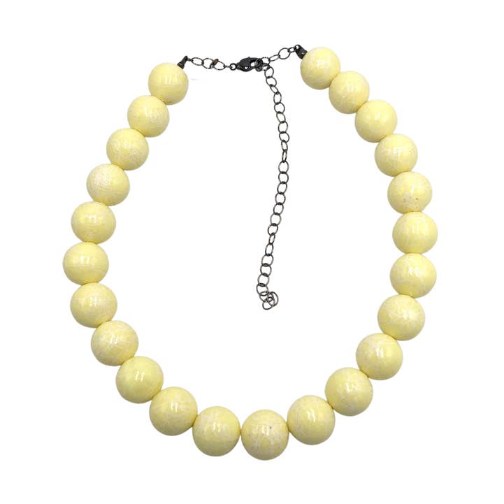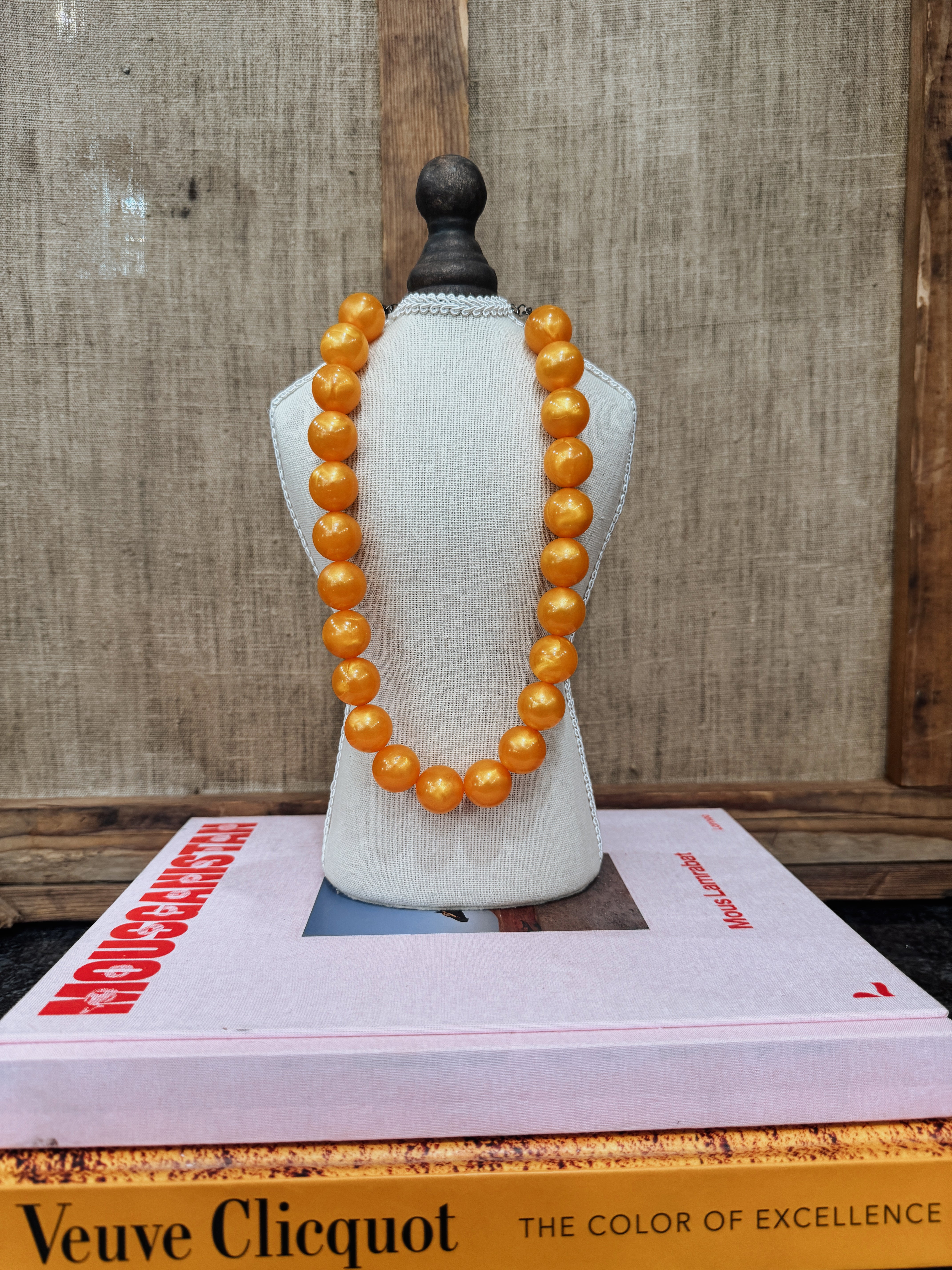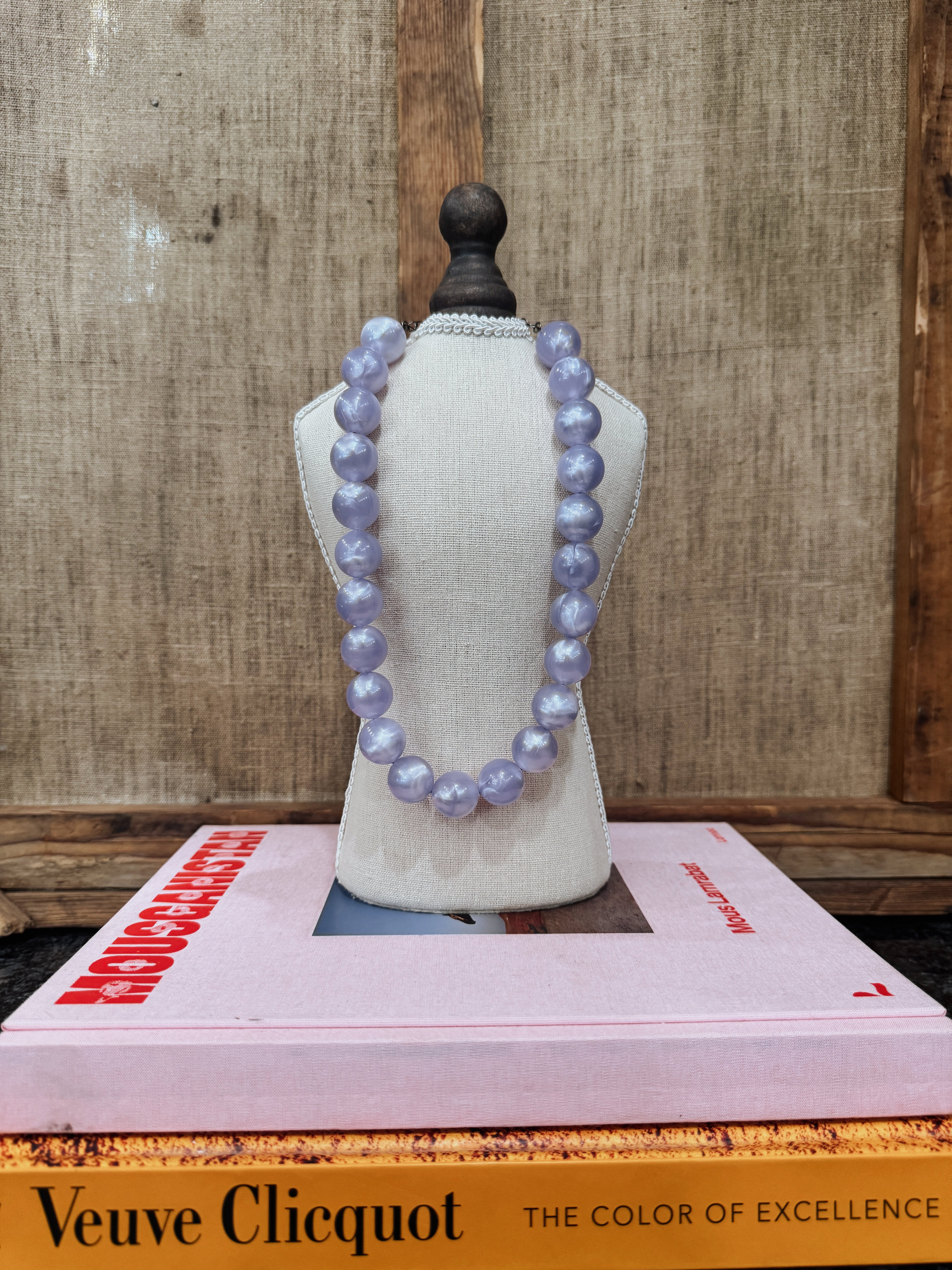 Bubble statement necklaces featuring lucite beads in a shiny opaque finish. The beads are lucite - a light-weight acrylic, each measuring about 16mm. Each necklace measures about 16" + a 4" gun metal extender. Jewelry is designed & hand finished by us, here in the US. Most all are made with vintage lucite parts from the 1960's - early 80's. Light-weight & fun to wear.