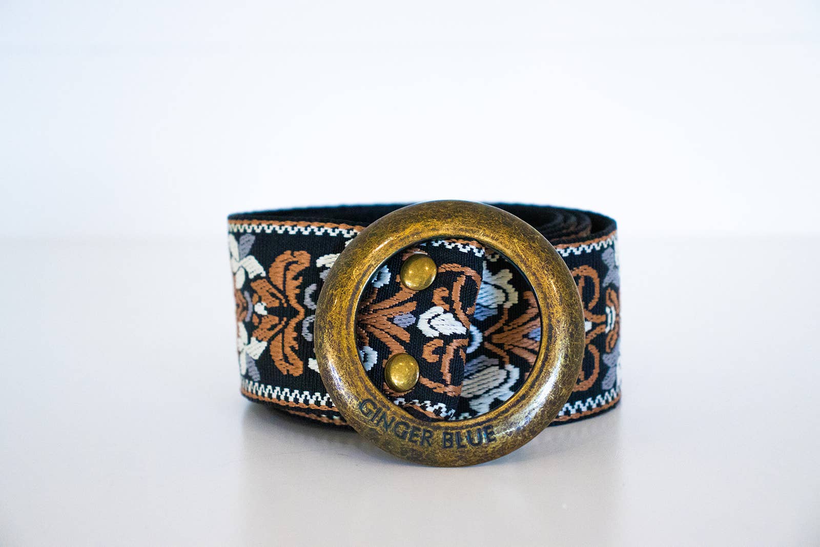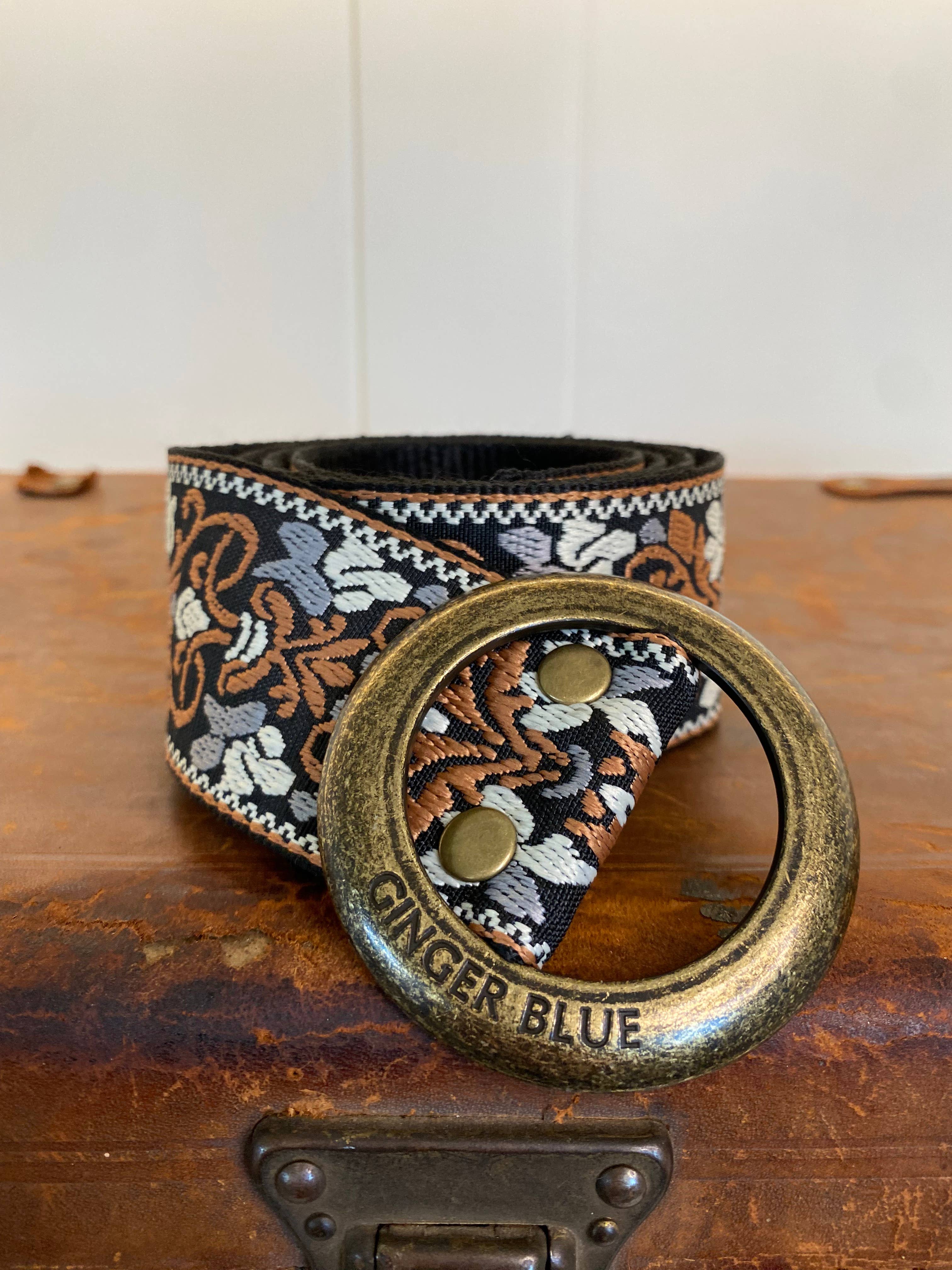 The Very Vintage Collection in Camel is a beautiful belt made up of neutral, soft colors embroidered in black, gray, camel and white. The Vintage pattern will add style to the most basic looks.