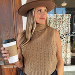 Knit Acrylic Nylon Polyester Sweater Cable Ribbed Detailed Turtle Neck Sleeveless Pullover Vest