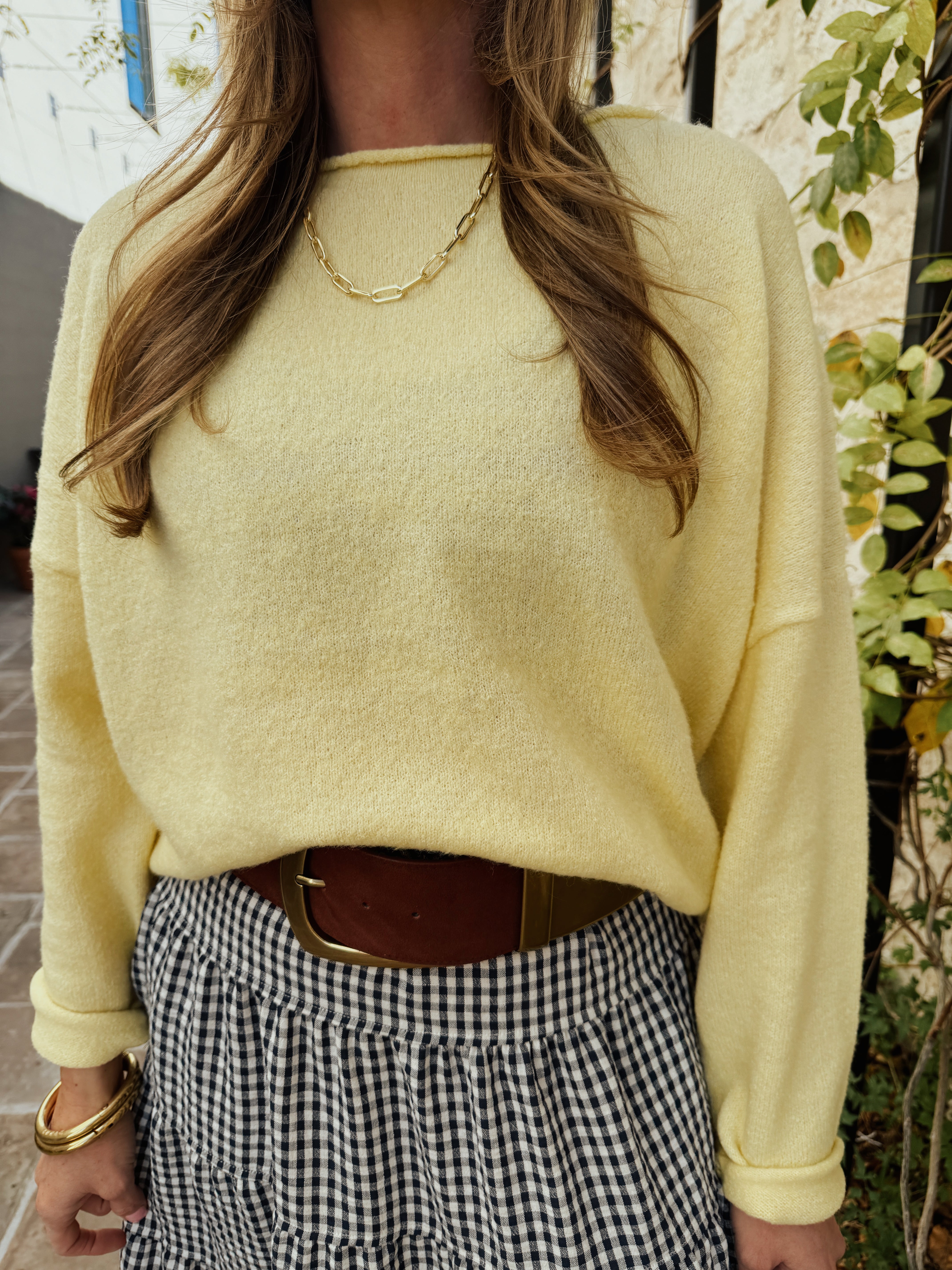 Knit Rolled Round Neck Pullover Top