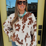 Knit Sweater, Animal Pattern Detail Round Neck Long Sleeve Pullover Top. Oversized fit! model is wearing small